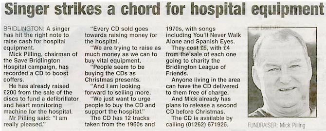 Donations This campaign is run on donations and therefore we would like your support. Without your donations, this campaign would not be possible. All donations made to the "Save Bridlington Hospital "campaign are received with thanks and go directly to maintaining a better future for our hospital. Receipts and letters are issued to all donators. Thank you to all. Accounts are kept and a bank account is currently up and running, for details, ring (01262) 671926. We are constantly looking for a Sponsor, if any